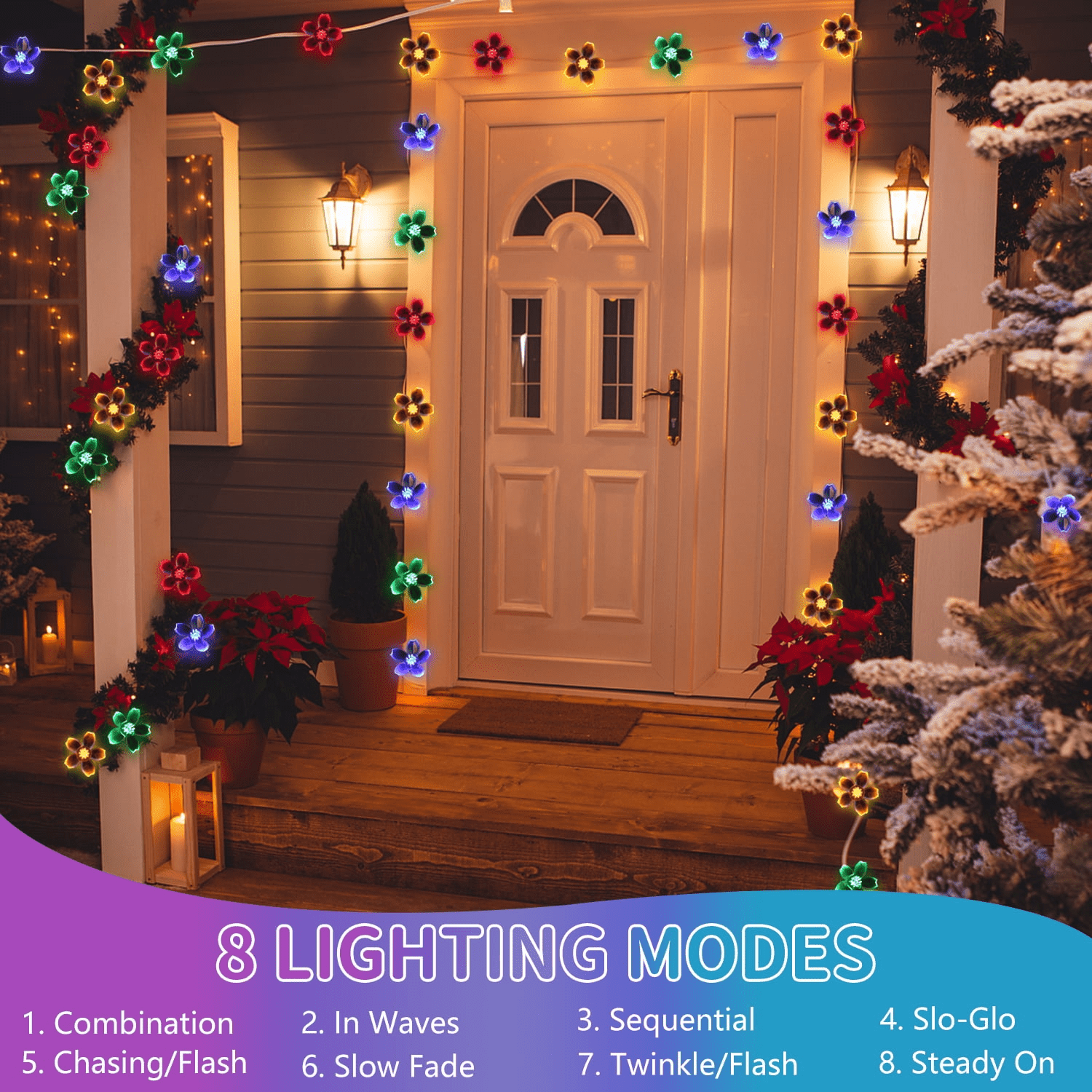 Solar flower string lights: the solar flower string lights including 50 led cherry blossoms which are bright, highly efficient. When the solar string lights illuminate during night, add romantic and charming atmosphere to your home, patio, lawn, garden, etc.