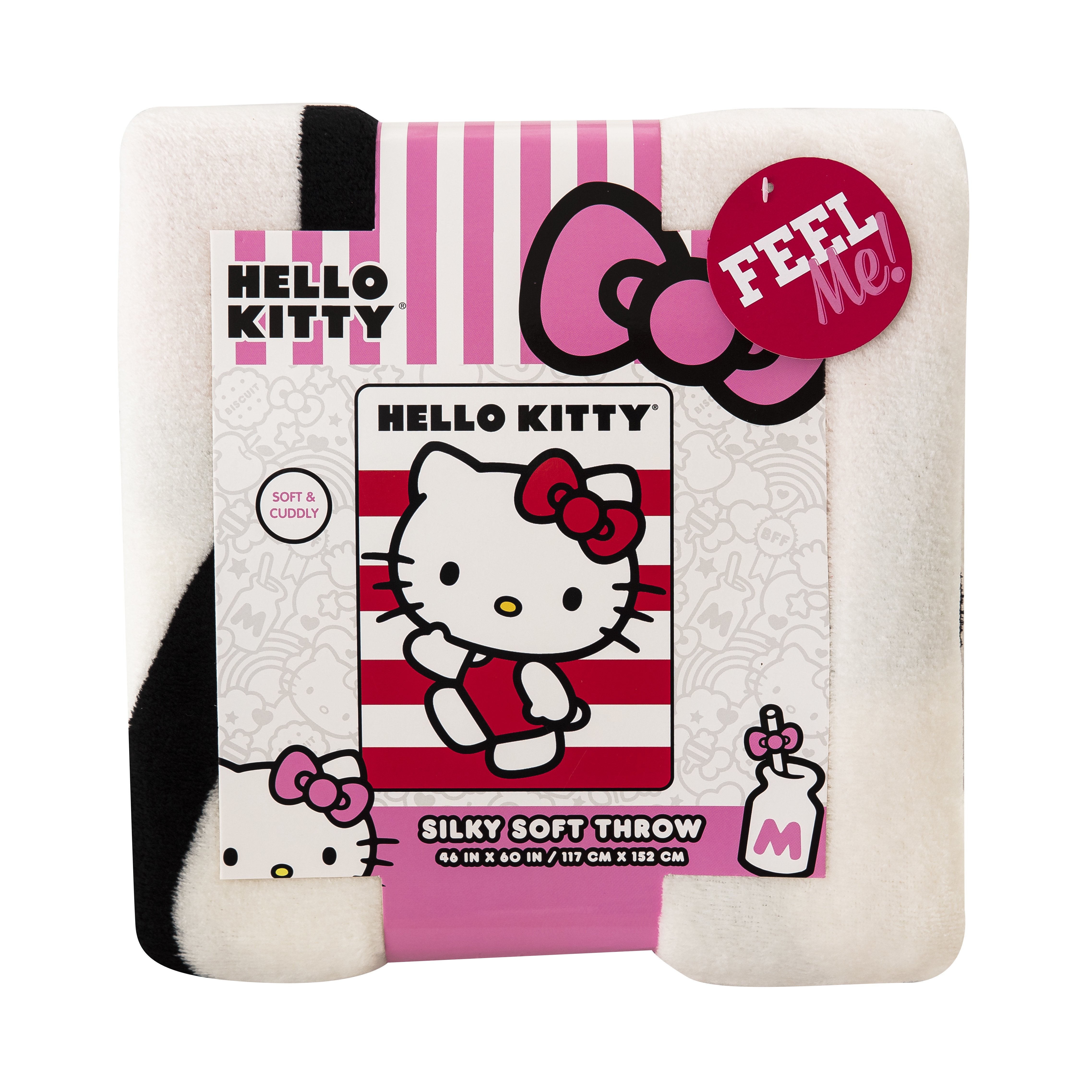 Keep warm with a Hello Kitty "Waving Stripes" Silk Touch Throw Blanket by TheNorthwest. Featuring Hello Kitty on a red and white striped background, this 46"x 60" throw is silky soft and warm, with decorative binding around the edges. Use it in the bedroom, or cuddle under it in the living room while watching your favorite movie. This throw blanket is the perfect cozy accessory.