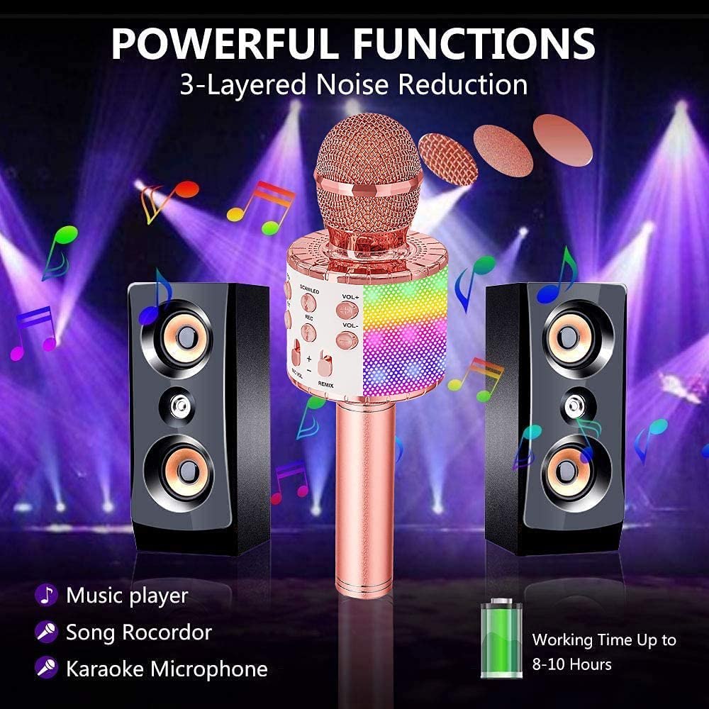Great Gift Choice: This Portable And Handheld Karaoke Microphone Has A Stylish And Bright Led Light. It Is Ideal For Your Beloved One As A Birthday, New Year, Christmas Gift Or Valentine's Day Gift.