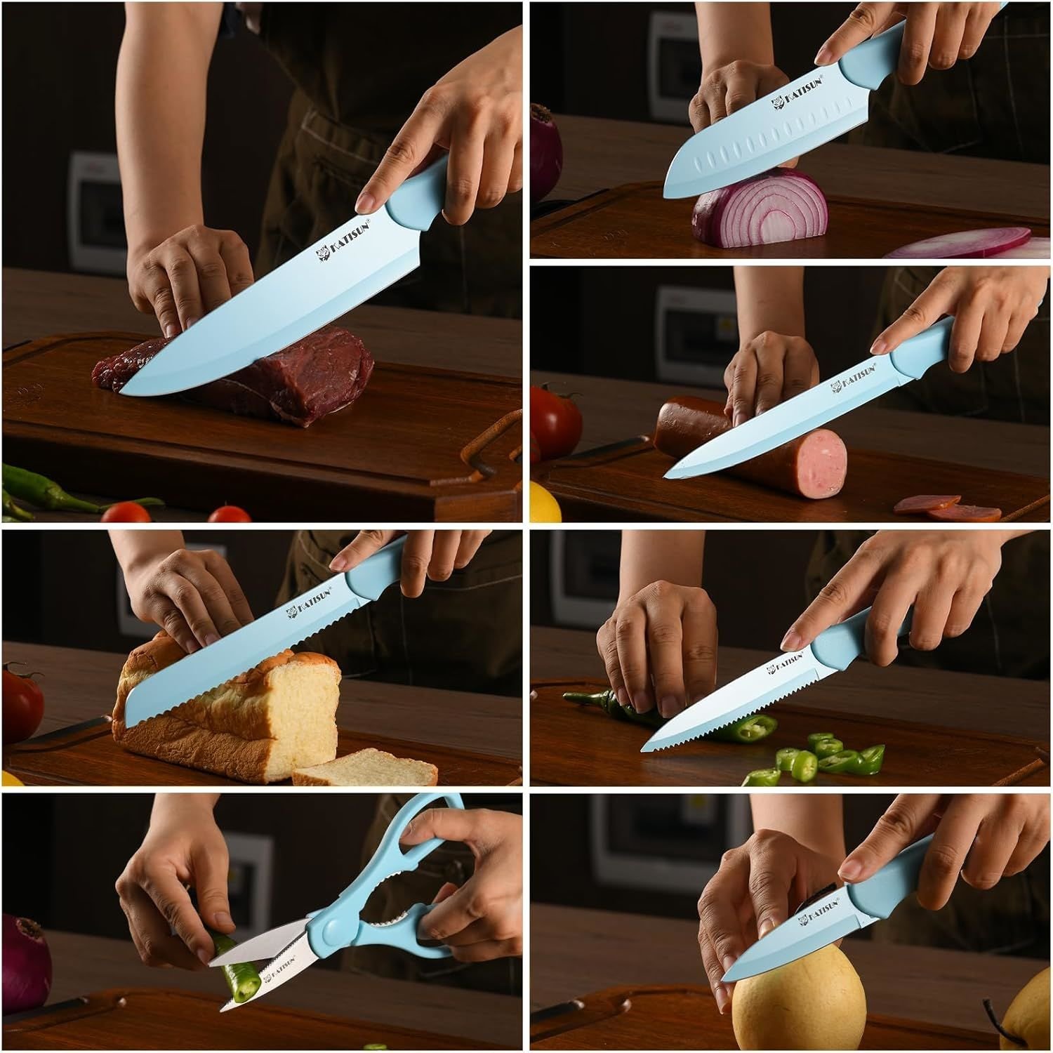 Home > Kitchen Knife Set with Guards, 13 Piece Blue Coated Stainless Steel Boxed Knives Set, Anti-Rust and Dishwasher Safe