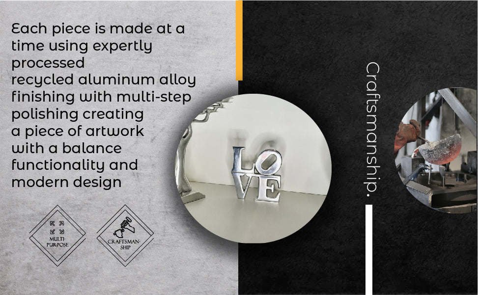 CRAFTSMANSHIP. Each piece is made at a time using expertly processed recycled aluminum alloy finishing with multi-step polishing creating a piece of artwork with a balance of functionality and modern design.