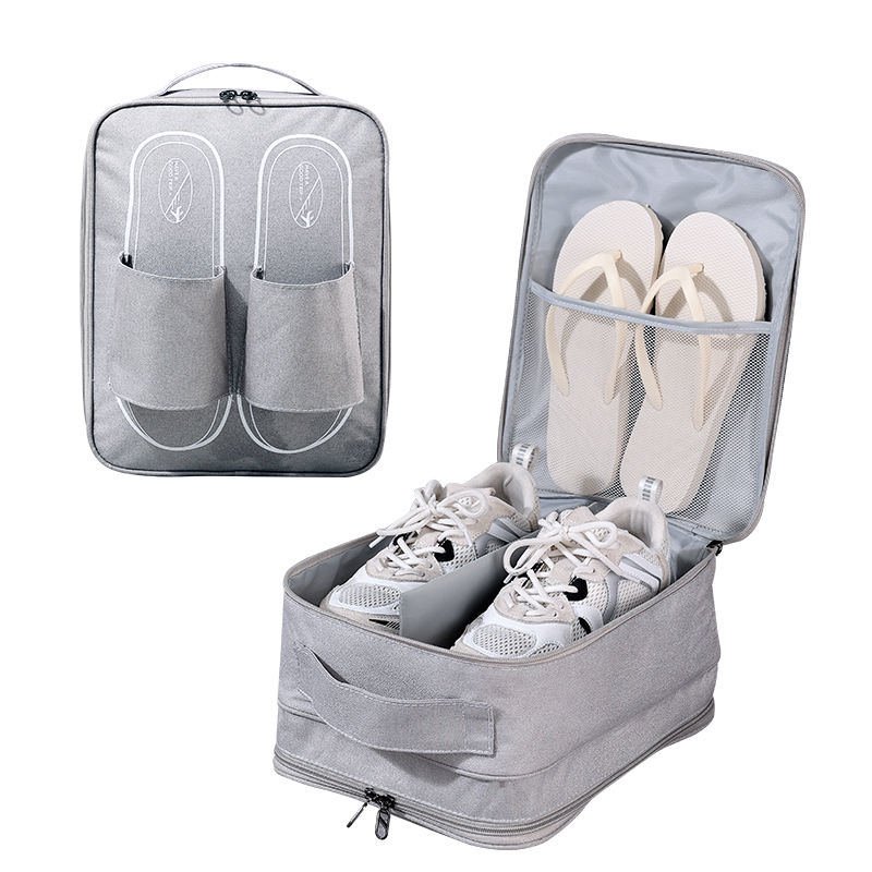 Travel shoes bagcan fit a pair of shoes, plus a pair of slipperssimple appearance, full color, polyester material, not easy to deform, not easy to damagea total of 6 colors to choose fromthe whole bag can be placed on the suitcase, and fixed on the trunk bar