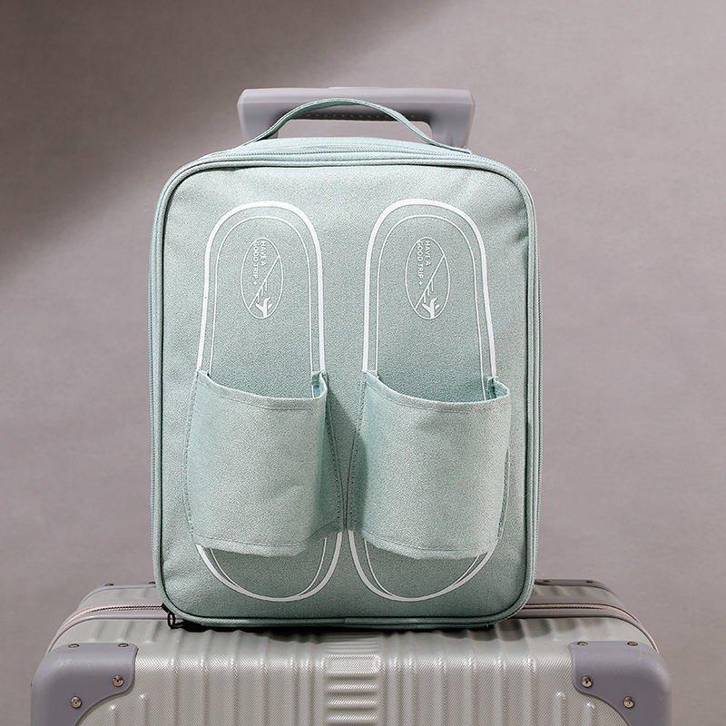 Travel shoes bagcan fit a pair of shoes, plus a pair of slipperssimple appearance, full color, polyester material, not easy to deform, not easy to damagea total of 6 colors to choose fromthe whole bag can be placed on the suitcase, and fixed on the trunk bar