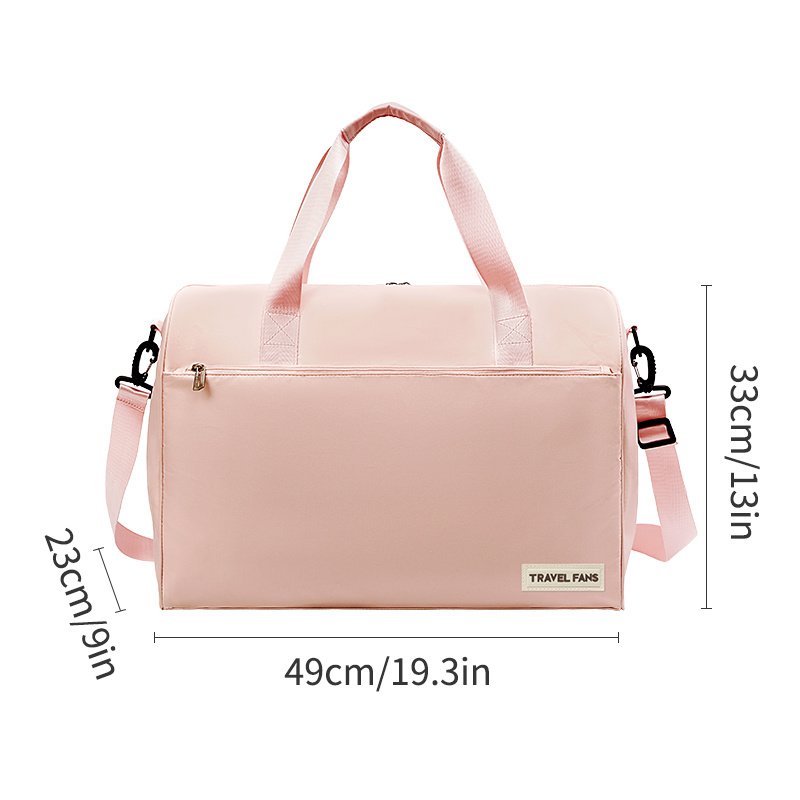 MULTIPLE POCKETS: Multiple pockets to categorize your shoes, socks, clothing and office supplies. The zipper is easy to grip and moves smoothly back and forth, making it easy to access your stash. Can be hung on luggage for easy and effortless carrying.TRAVEL BAG SIZE: The travel bag measures 19.3' x 9' x 13' and can carry a laptop and fit in the overhead compartment of an airplane. Large capacity space can hold your clothes, shoes and socks as well as office supplies.Thoughtful Features: Waterproof fabric, you can just use a towel to absorb the liquid on the surface, soft and comfortable to touch. Durable duffel bag, suitable for 2-4 days traveling. INCLUDES ADJUSTABLE SHOULDER STRAP + Trolley Sleeve Can be hung directly on your luggage, our carry-on bag makes your traveling more convenient.MULTI-PURPOSE: Suitable for travel bag, hospital maternity bag, yoga gym bag, diaper bag, weekend bag, overnight bag, airline personal effects bag. You can use it to make a home for your travel essentials or give it as a gift to your beloved ones.SATISFACTION: Your satisfaction is our greatest motivation, we are committed to providing you with the best service. If you have any quality problems, please feel free to contact us, we will provide you with a satisfactory solution.
