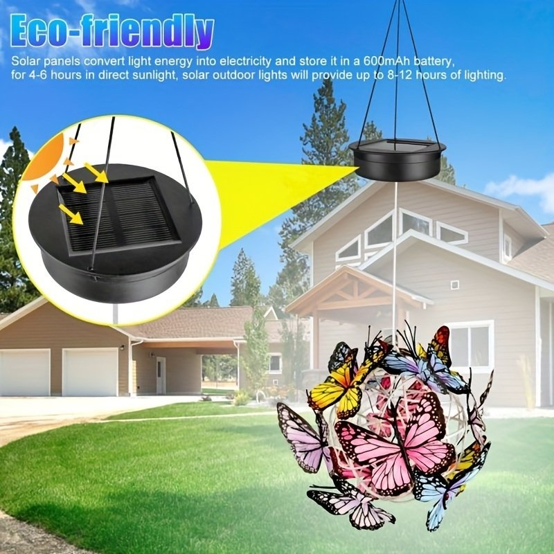 Home > 1pc LED Solar Butterfly Ball Wind Chime Light Hanging Lantern Garden Yard Decor Solar Lights Outdoor Butterfly Lights Garden Decorative Solar Lights W