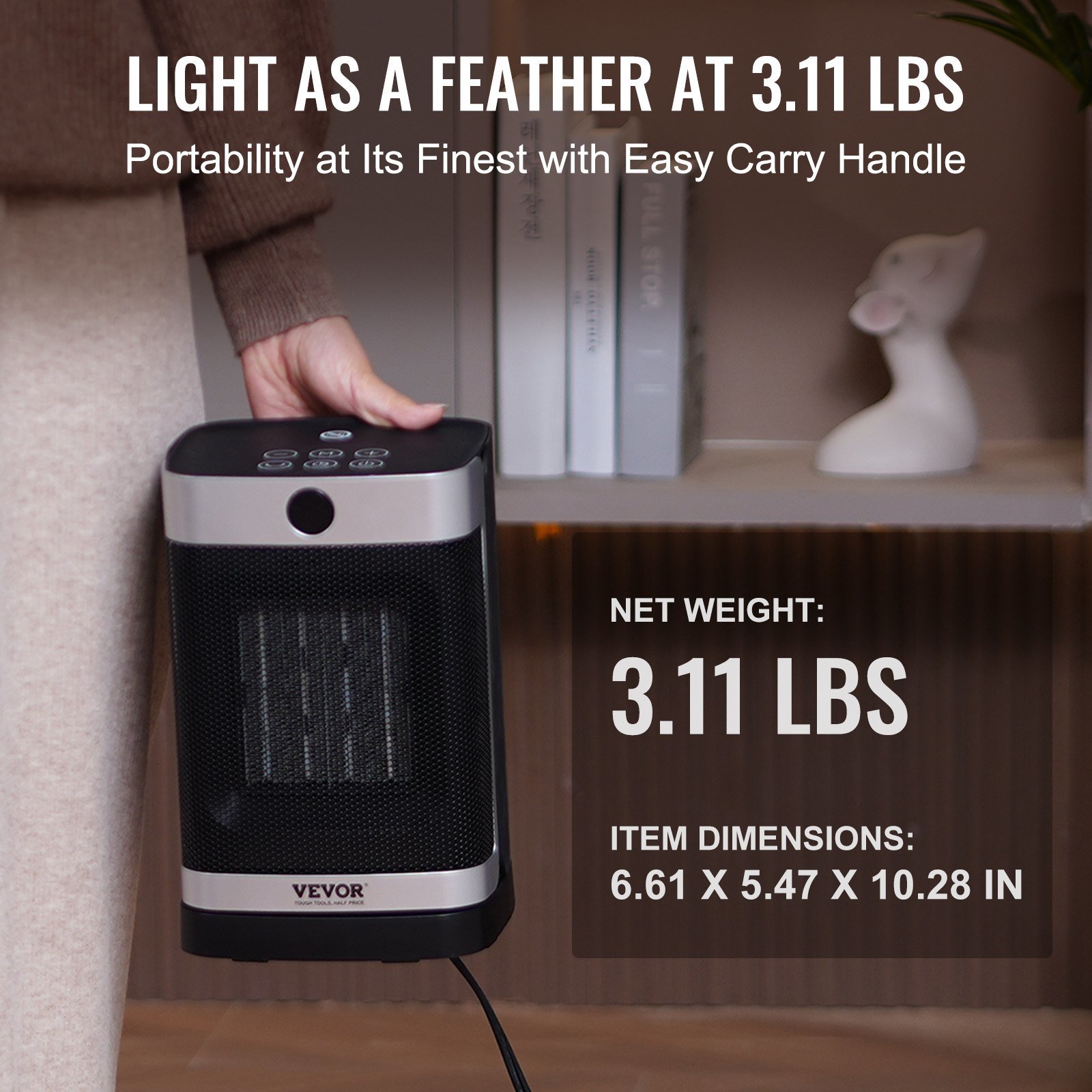 5.Convenient Handle: Weighing only 3.11lbs / 1.64kg, the heater has a comfortable handle at the top of the unit. Even with one hand, you can effortlessly carry it to your ideal location, allowing you to move it around your living space as needed.