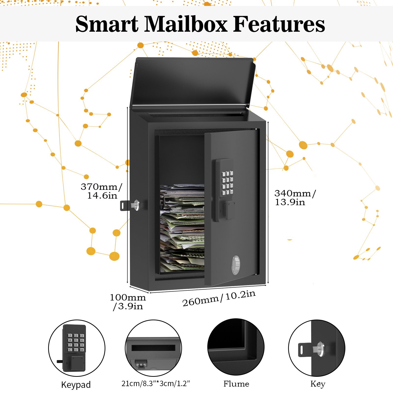 WeHere Mailbox with Electronic Lock, Wall Mount Mailbox for Outside Waterproof Design, One Time Code/Permanent code/Spare Keys Unlock